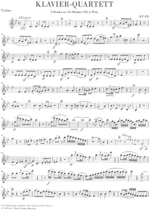 It is hardly imaginable today, but the Viennese public of Mozart’s time was unable to appreciate the beauties of Mozart’s Piano Quartet K. 478. It was not accustomed to the dramatic g minor character – especially of the first movement – coming from this composer. And thus it came about that the publisher Hoffmeister refused to print any further quartets; after K. 478, Mozart wrote only the E flat major Quartet K. 493, although a series of six works had originally been planned. What a pity! Today the two piano quartets rank among the landmarks of Mozartian chamber music and continue to enjoy a great status.