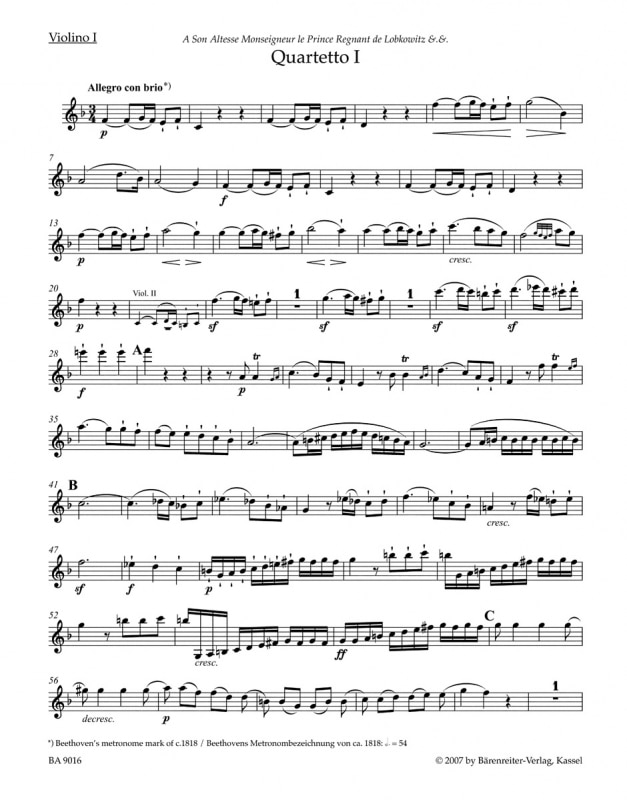 The internationally renowned Beethoven scholar has turned his attention to a set of chamber musical crown jewels; Beethoven’s important opus 18 string quartets. The new Bärenreiter publication is not based on a reprint of the first edition parts, but makes use of a manuscript set of parts with some corrections in Beethoven’s hand which turned up in the 1980s.