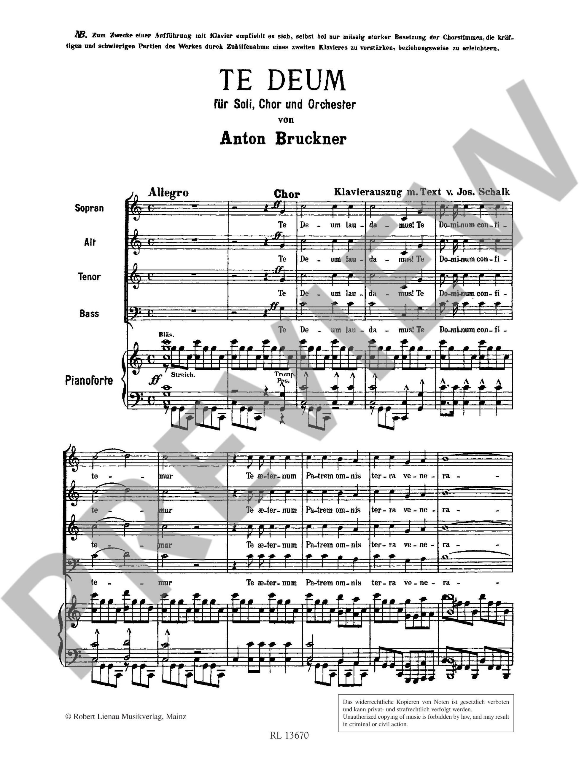 Bruckner, Anton: Te Deum (klaverutdrag/vocal score)