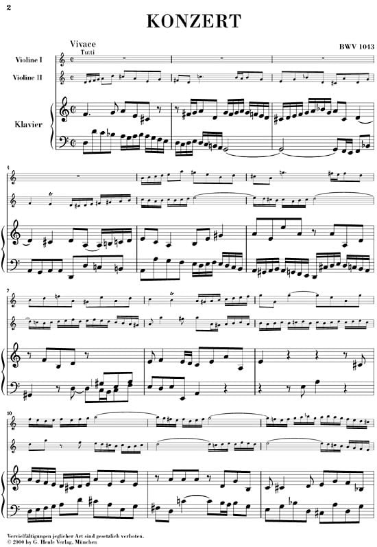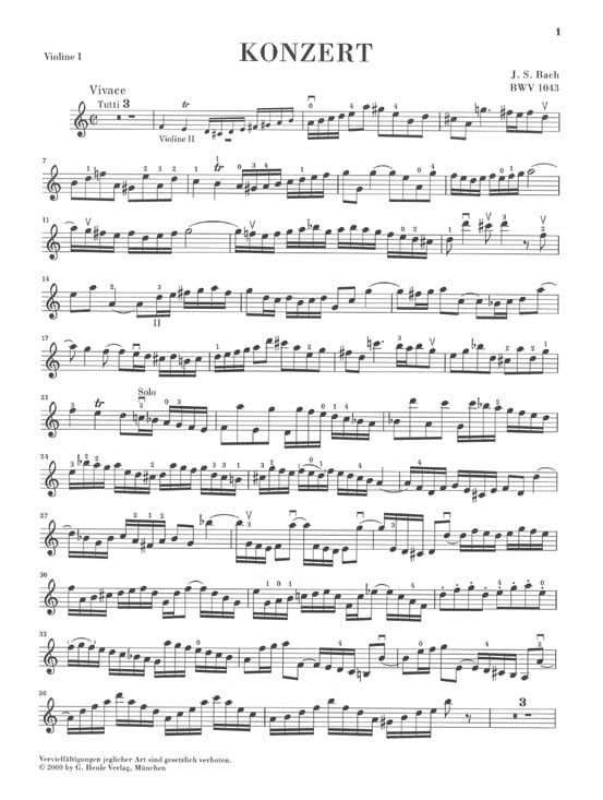 The solo parts of this wonderful Double Concerto for two violins and orchestra survive in a faultless fair copy by Bach that was made around 1730. The slow movement is regarded as a melodic high point of the composer’s output. With the two solo violins on an equal footing, the concerto amply deserves its position as one of Bach’s most often-played and popular works.
