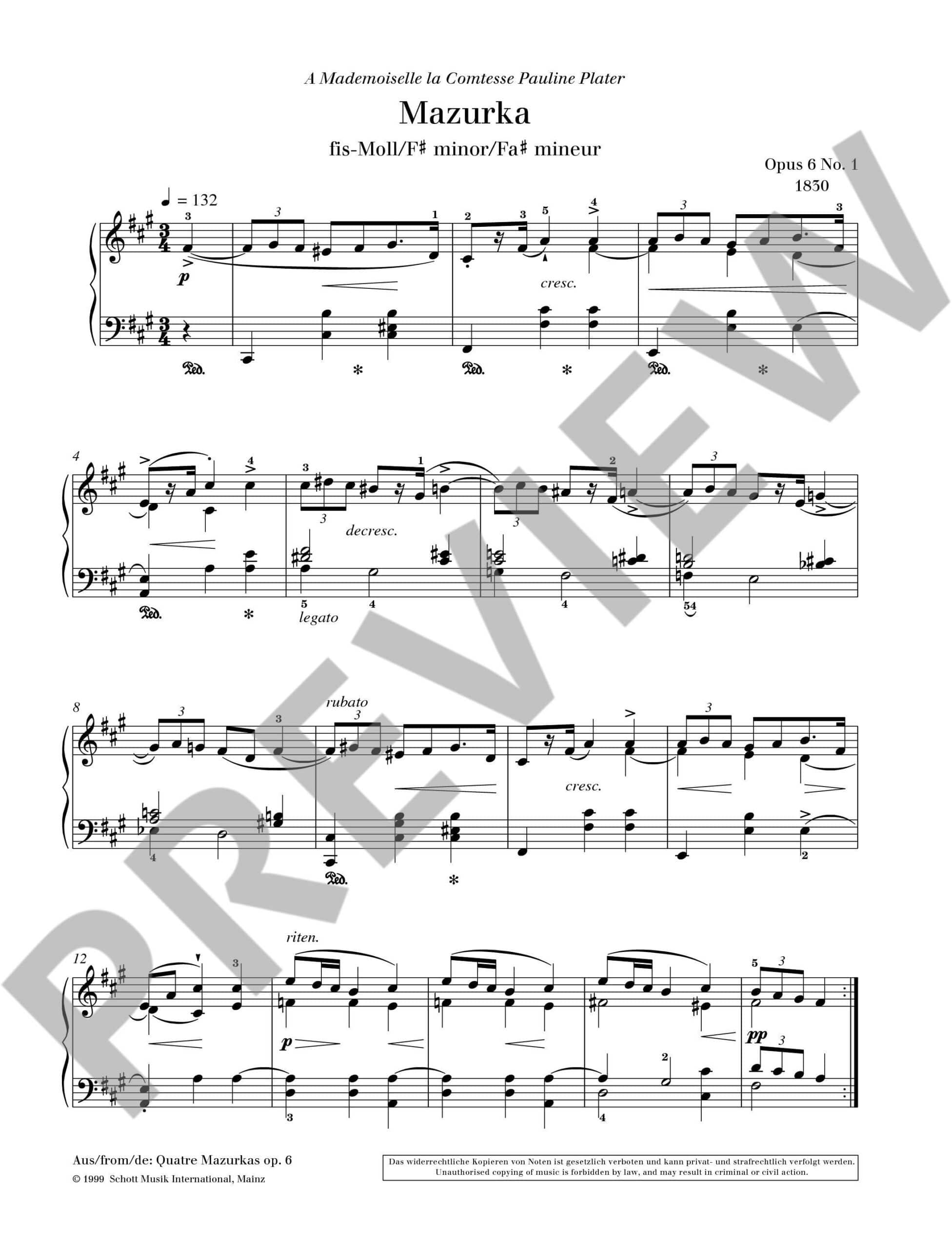 Mazurka F sharp minor, Op. 6/1