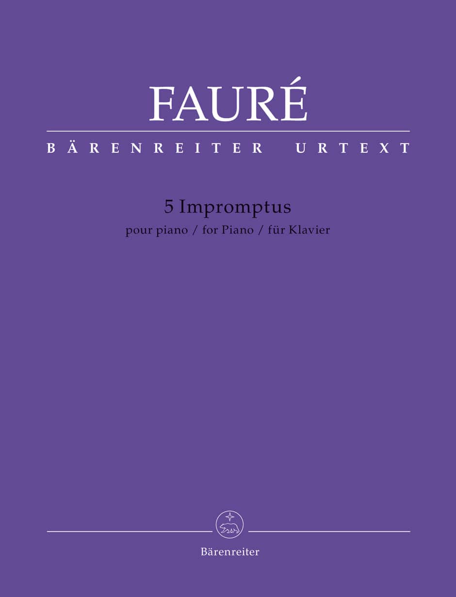Fauré composed his 5 impromptus in two distinct periods of his career, in 1881–83 and 1906–09. Inspired by Chopin’s example, the brilliant early impromptus (opp. 25, 31 and 34) resemble lyrical études that seem like improvisations but are laid out in symmetrical form with a coda. In contrast, the impromptus opp. 91 and 102 are far more boldly conceived in their sonority, harmony and virtuosity. This scholarly-critical Urtext edition is edited by Jean-Pierre Bartoli, a musicologist and professor at the Sorbonne. It presents the musical text from the corresponding complete edition volume (BA 9471) which was published in 2020 as part of the “OEuvres complètes de Gabriel Fauré”. The edition contains a knowledgeable Foreword (Fr/Eng/Ger) and Critical Commentary (Eng). It goes without saying that a reader friendly engraving, practical page turns and valuable performance suggestions are also included.