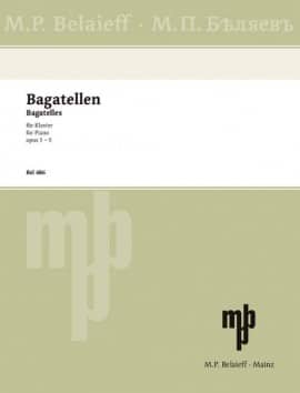 What mainly interests him in the bagatelles is the melody, though not as something complete but rather as an answer to ’momentarily’ flashing intonations, calls, motifs which the composer can no longer get out of his ear. The short form makes it possible to capture the ’moment’ or ’moment musical’ as such and ’bring it to a halt’ (Verweile doch! Du bist so schön!… according to Goethe).