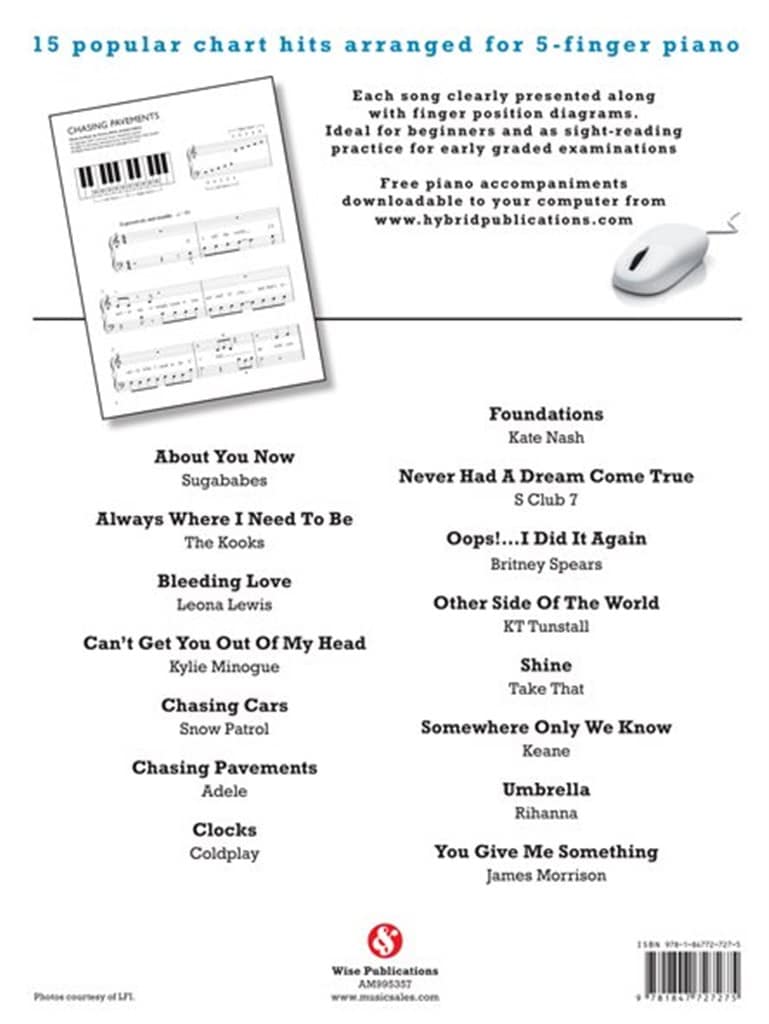 Fifteen popular chart hits arranged for five finger Piano.