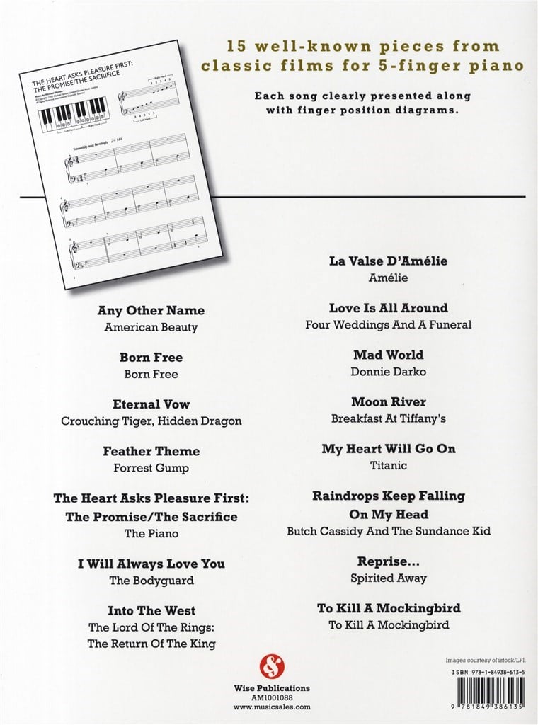15 well-known pieces from classic films for five finger piano. Each song is clearly presented along with finger position diagrams. Ideal for beginners and as sight-reading practice for early graded examinations.