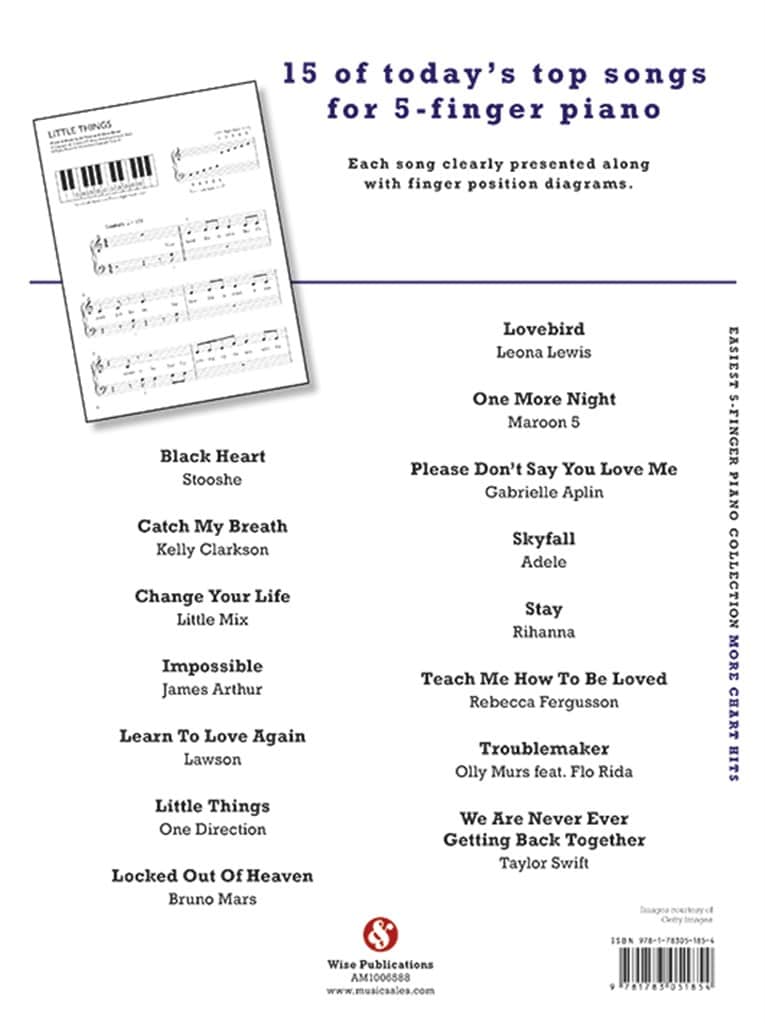 This edition from the hugely popular Easiest 5-Finger Piano Collection series features 15 popular chart hits arranged for 5-finger piano.