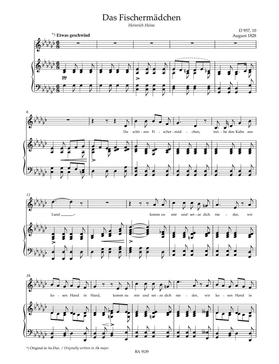 Do you know our performing edition of Schubert Lieder? 13 volumes containing the complete Lieder for solo voice and piano in editions for high, medium and low voice are planned. Nine of these volumes have already been published and provide the basis for this special sampler at a very special price. “A Taste of Schubert” presents one to three pieces from each volume to create a cross-section of Schubert’s complete lieder œuvre. Lieder from his famous cycles are included as well as “Sehnsucht”, of which he wrote several settings.
