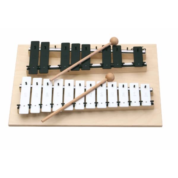 Kromatisk 20 toners metallofon med vita och svarta ljudplattor.