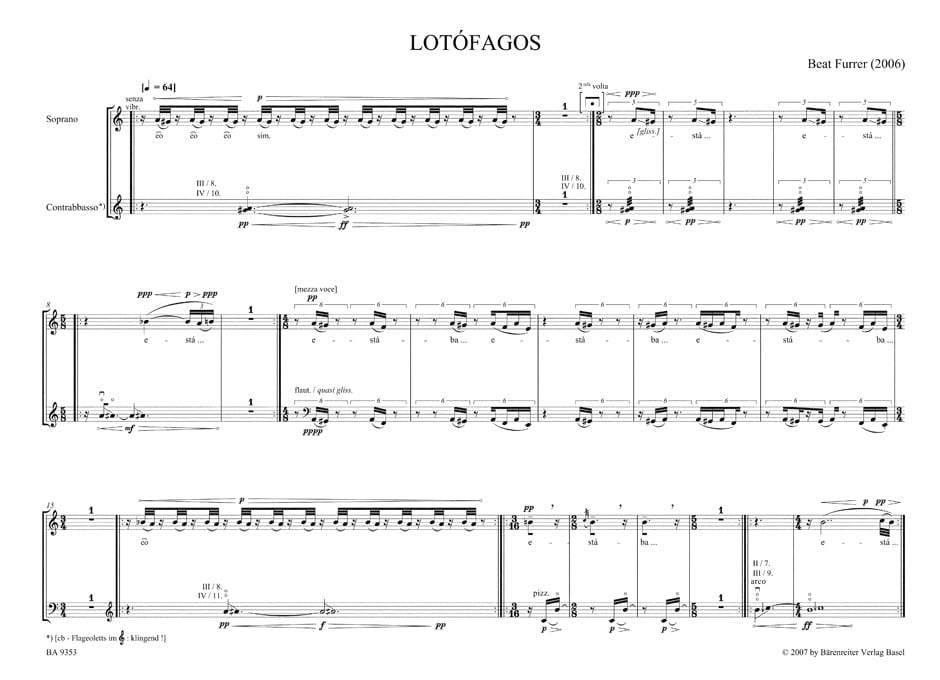 Furrer, Beat: lotófagos I für Sopran und Kontrabass (2006)